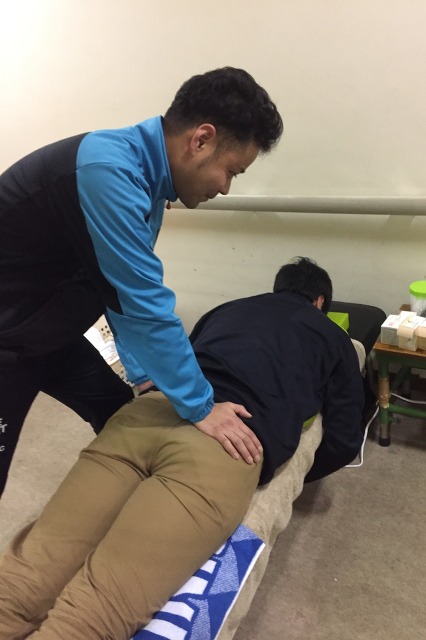 全国健康マラソン井原大会にて、選手の方々のケアを行う