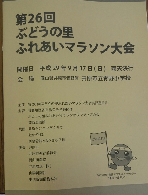 9月18日(日) 井原市青野町で行われる「ぶどうの里ふれあいマラソン大会」にてケアスタッフを担当します!